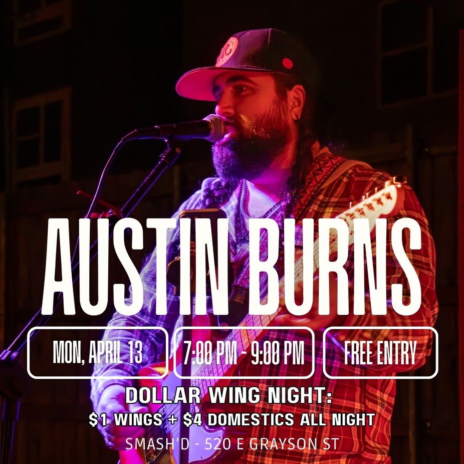 Join us on Monday evening from 7:00 to 9:00 PM for a solo live performance by local drummer, singer, and guitarist Austin Burns! Settle in with great food, refreshing drinks, and an acoustic set that will make your Monday night feel easy. While you enjoy the music, take advantage of our Monday specials: $1 wings available all day and $4 domestic beers. It’s the perfect way to kick off your week at Smash’d.