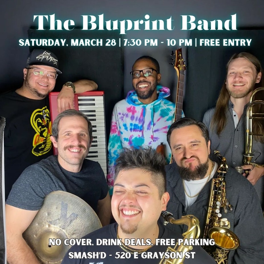 Join us on Saturday, March 28 at 7:30 PM for a live performance by The BluPrint Band at Smash’d! This instrumental groove collective delivers horn-driven arrangements that blend R&B, jazz, and funk into a dynamic and energetic live show. Known for their genre-bending originals, exciting improvisation, and creative covers, The BluPrint brings a fresh, feel-good sound that keeps audiences moving all night.