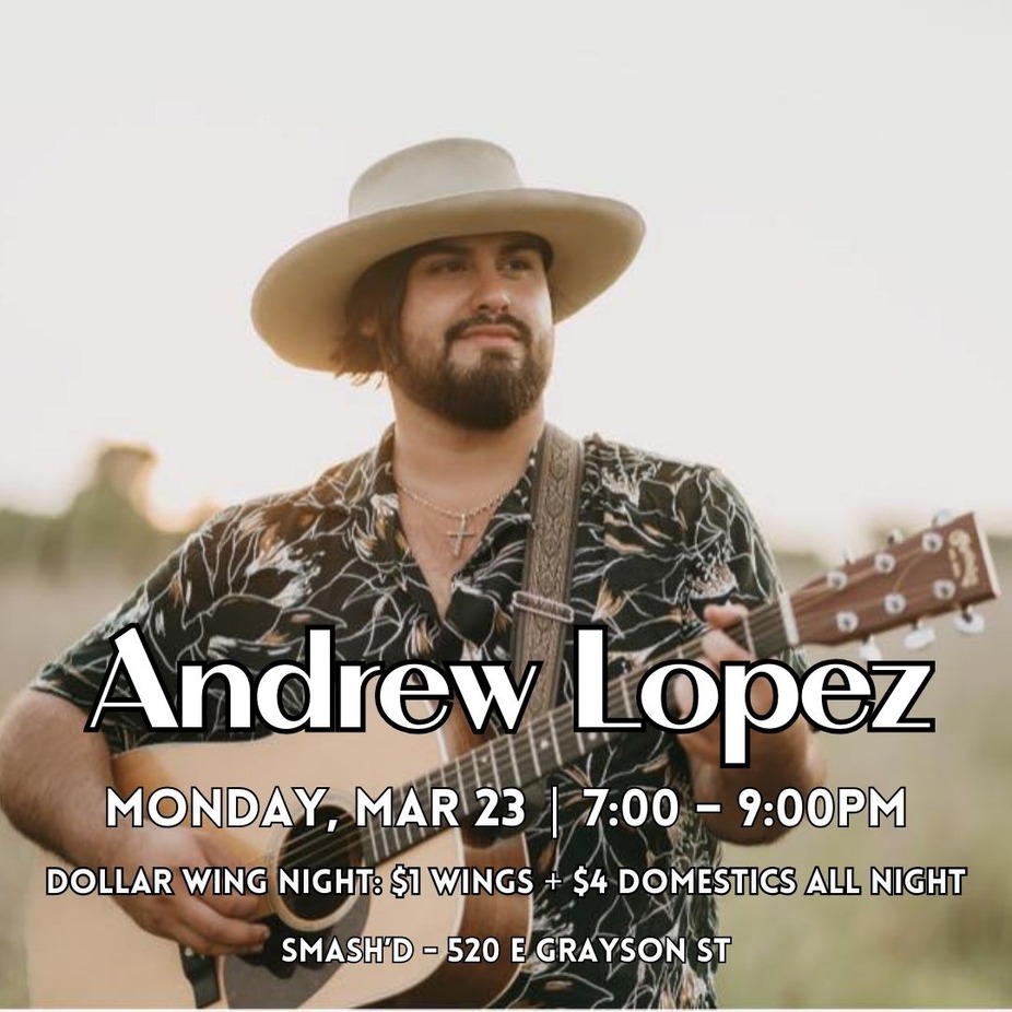 Join us on Monday evening from 7:00 to 9:00 PM for live music by Andrew Lopez. Settle in with great food, refreshing drinks, and an acoustic set that will make your Monday night feel easy. While you enjoy the music, take advantage of our Monday specials: $1 wings available all day and $4 domestic beers. It’s the perfect way to kick off your week at Smash’d.