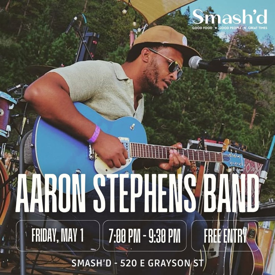 Come to Smash’d on the first Friday of every month from 7 PM to 9:30 PM for a live performance by local artist Aaron Stephens at Smash’d! Experience his seamless fusion of soul, blues, and rock as he takes the stage. Enjoy delicious food, drink specials, and live entertainment by Aaron Stephens and band.