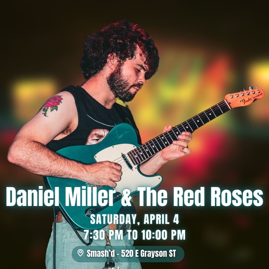 Join us on Saturday, April 4 from 7:30 to 10 PM, join us at Smash’d for a captivating performance by Daniel Miller & The Red Roses, a talented SATX local band. They’ll be playing their unique blend of country, folk, and Americana instrumental music. Don’t miss out on this soulful evening!