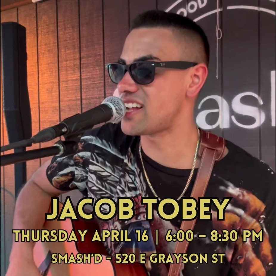 Join us Thursday, April 16 at 6 PM at Smash’d for an acoustic set by Jacob Tobey: the voice of the San Antonio Spurs and a talented singer-guitarist bringing smooth vibes to your Monday night.