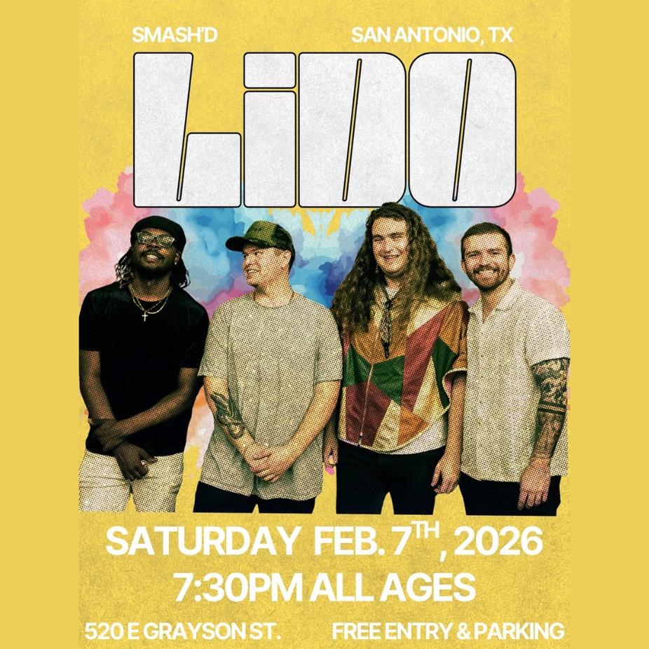 Join us on Saturday, February 7 from 7:30–10:00 PM for a live performance by LiDO at Smash’d! Led by Houston-based drummer Isaac Pulido, LiDO delivers a high-energy blend of jazz, funk, rock, and fusion, backed by top-tier musicianship and dynamic grooves. Come enjoy an electrifying night of live music, great food, and drinks.