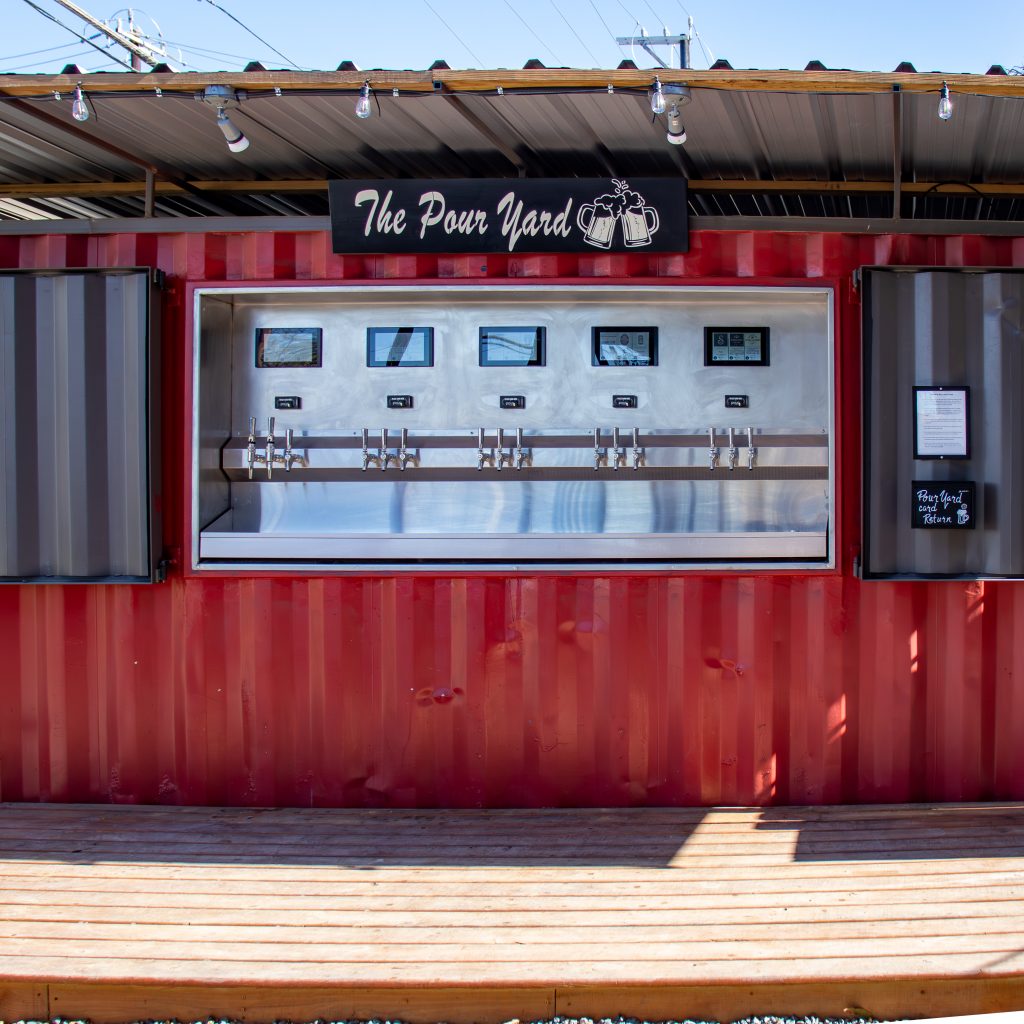 The Pour Yard is a self-serve tap wall featuring a constantly rotating selection of drinks.